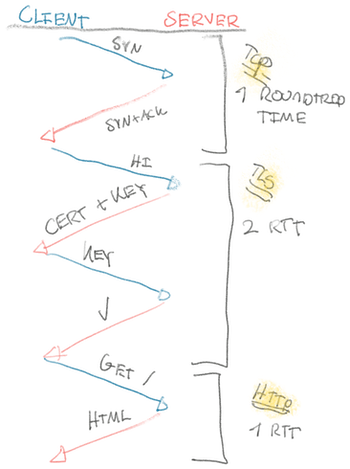 SYNandSYN+ACK) - 2 TLS roundtrips to negotiate a secure connection